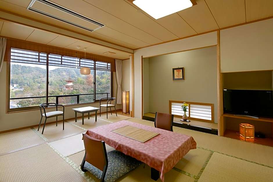 Room is fitted with a flat-screen TV, a mini-fridge and an private bathroom. Yukata robes and green tea are provided. Guests sleep in Japanese futon bedding on the tatami (woven mat) floor.